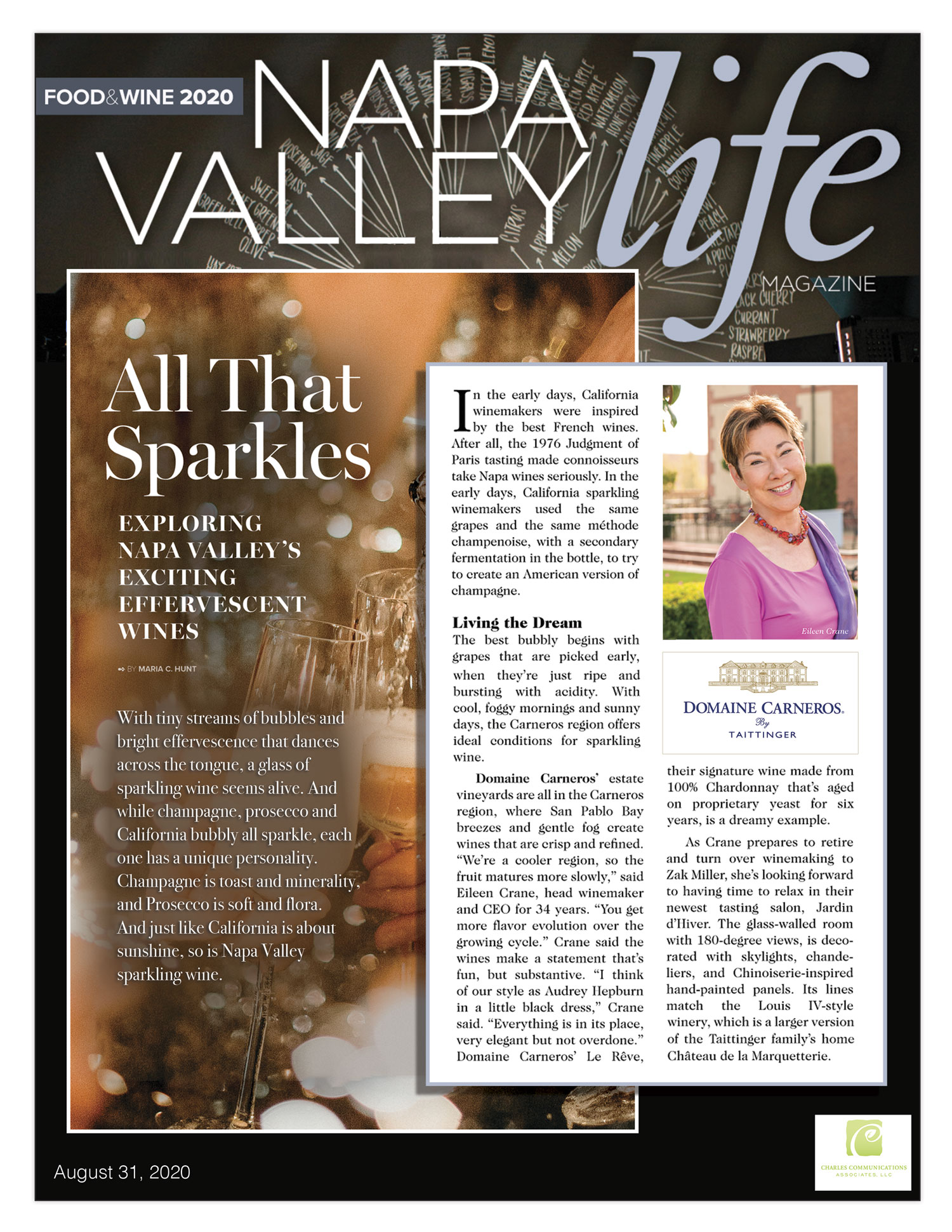 Crane is not only one of the industry’s pioneering women, but also the most experienced American sparkling winemaker with over 40 years to her credit and is widely regarded as the doyenne of sparkling wine in America. Her pursuit of excellence in viticulture, winemaking and hospitality has made Domaine Carneros an iconic American winery. After an incredibly successful career spanning 42 years, Eileen Crane stepped down from her role as CEO at the end of summer 2020. She now serves as consulting winemaker for the team.