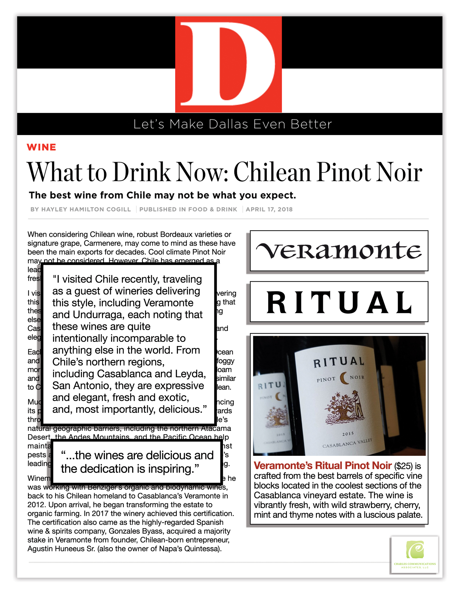 Organic faming practices and a rigorous approach to quality control have helped make Veramonte wines a standout in competitions, restaurants, and dining rooms across the world. The unusually cool climate in the foothills of the Coastal Range allows for the highest quality pinot noir, sauvignon blanc, and chardonnay vines to flourish. Veramonte’s portfolio includes handcrafted bottlings of those varieties as well as carmenere, cabernet sauvignon, merlot, and a rosé of syrah.